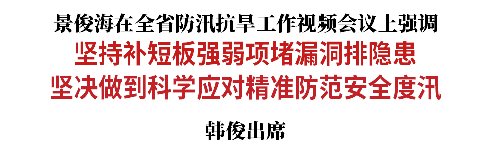 随后,景俊海主持召开全省防汛抗旱工作视频会议。他强调,当前,我省已经进入“七下八上”的防汛关键期,各级党委政府必须毫不放松、提高警惕、严阵以待,切实做好迎战极端天气的充分准备。一要突出抓好监测预报预警,对异常天气和重大汛情务必做到联合会商、预报准确、预警及时,力争为防汛抗洪救灾、群众避险转移打出更多提前量,尽最大可能减少人员伤亡。二要突出抓好防洪工程安全,加大还河于河工作力度,确保河道以最大径流面行洪,坚决防止洪水进城、淹地;对水库进行精准调度、科学调度、联合调度,逐条江河细化防御措施,切实抓好尾矿库加固和头顶库安全防范,坚决做到防患于未然。三要突出抓好城市内涝防范,坚持工程措施和临时措施相结合、技防措施和人防措施相结合,打通明沟暗渠,连通城市水系,增强城市行洪排涝能力;完善城市暴雨内涝防范应急预案,聚焦低洼居民区、地下管廊、地铁、下穿通道、地下商场、危旧房屋、建筑工地等重点部位,严格落实防倒灌安全措施,预置抢险排涝人员和设备,坚决防范遏制安全事故发生。四要突出抓好山洪地质灾害防御,健全完善监测预警系统和群测群防体系,一旦发生灾情要搞好安全转移、抓好灾后安置。五要突出抓好农业防灾减灾,组织农户抓紧加固大棚、圈舍等农业设施,清理疏通沟渠和排水系统,坚决防止发生农田内涝、作物倒伏、设施受损等灾害风险,千方百计确保今年粮食丰收。六要突出抓好防汛抗旱统筹工作,严防旱涝急转、旱涝并发。七要突出抓好应急救灾保障,强化应急预案、救援力量、物资储备、值班值守,切实形成防汛抗旱工作合力。