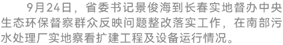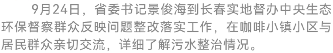9月24日,省委书记景俊海在长春实地督办中央生态环保督察群众反映问题整改落实情况。他强调,要忠实践行习近平生态文明思想,牢固树立以人民为中心的发展思想,坚持问题导向、目标导向、结果导向,进一步提高政治站位,狠抓整改落实,着力解决群众身边的生态环境问题,让人民群众生活得更加放心、安心、舒心。