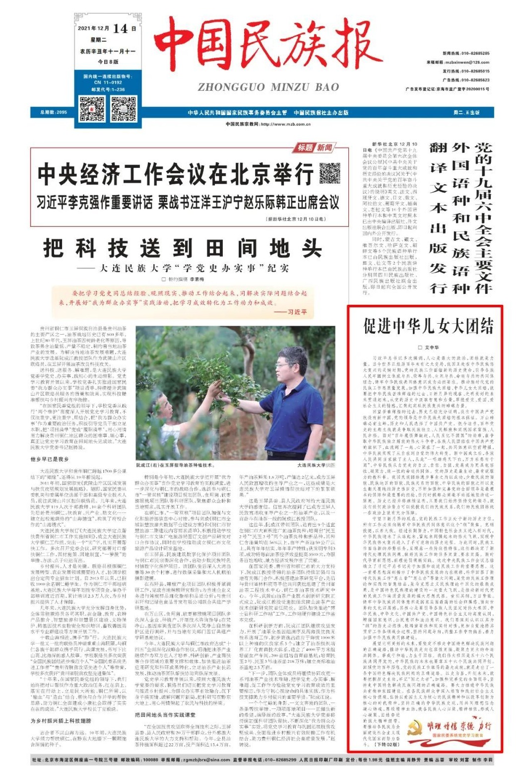 船的力量在帆上,人的力量在心上。国家的统一,人民的团结,国内各民族的团结,是我们的事业必定要胜利的基本保证。我们坚信,有中国共产党领导的政治优势和中国特色社会主义的制度优势,伴随着我国日益富强起来、日益走近世界舞台中央,中华民族的精神和经济纽带必将越来越坚韧,中华民族共同体意识必将越来越坚实,中华民族共同体必将牢不可破,中国发展的巨轮必将战胜前进道路上一切风险挑战、不断从胜利走向新的胜利。