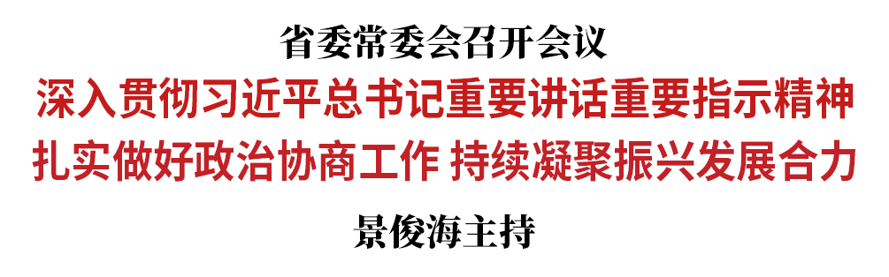6月2日,省委书记景俊海主持召开省委常委会会议,传达学习中共中央政治局5月27日会议主要精神,传达学习习近平总书记在中共中央政治局第三十九次集体学习时的重要讲话精神,集中学习《求是》杂志发表的习近平总书记重要文章《努力建设人与自然和谐共生的现代化》精神,听取第九次全国信访工作会议主要精神,研究部署我省贯彻落实举措。