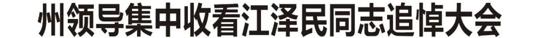 12月6日上午,江泽民同志追悼大会在北京人民大会堂隆重举行。中共中央总书记、国家主席、中央军委主席习近平出席追悼大会并致悼词。州委、州人大常委会、州政府、州政协等在延州级现职领导同志在延吉集中收看电视实况直播,怀着极其沉痛的心情,深切缅怀江泽民同志的丰功伟绩和崇高风范。