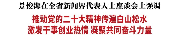 1月5日,省委召开全省新闻界代表人士座谈会,围绕学习宣传贯彻党的二十大精神,总结去年工作,谋划今年任务。省委书记景俊海主持会议并讲话。他强调,要深入贯彻习近平新时代中国特色社会主义思想,更加自觉担负起举旗帜、聚民心、育新人、兴文化、展形象的使命任务,推动党的二十大精神传遍白山松水,进一步激发干事创业热情、凝聚共同奋斗力量。