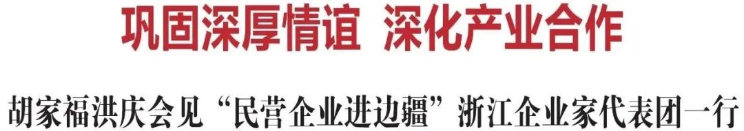 胡家福代表延边州委、州政府向浙江企业家代表团一行的到来表示欢迎,对各位企业家对延边振兴发展的关心支持表示感谢。他说,改革开放以来,一代又一代浙商秉承“走遍千山万水、想尽千方百计、说尽千言万语、吃尽千辛万苦”的“四千精神”,筚路蓝缕、披荆斩棘,闯出了敢为人先的新路、书写了创新创业的传奇。延边与浙商有着深厚的情感渊源和合作基础,自2016年延边与宁波开展东西部扶贫协作以来,一大批敢闯敢拼的浙江企业家来到延边这片热土上耕耘、播种,为推动延边振兴发展作出了突出贡献。延边区位优势明显、优惠政策富集、生态资源优质、产业基础坚实,是一片投资的热土、发展的蓝海。当前,全州上下正深入贯彻习近平总书记视察吉林视察延边重要讲话重要指示精神,认真落实省委“一主六双”高质量发展战略,加快推动短板产业补链、优势产业延链、传统产业升链、新兴产业建链,着力打造医药、食品、新能源、文旅、医美等“十大产业集群”,积极构建多点支撑、多业并举、多元发展的现代产业体系,努力抢占新赛道、塑造新动能、构筑新优势。希望各位企业家在深入考察的基础上,找准企业布局与延边发展的结合点,把更多资本、技术、项目等引入延边,在现代农业、文化旅游、装备制造等领域谋划重大项目、深耕延边市场,与延边一道共享新机遇、共谋新发展、共创新未来。延边州委、州政府将始终聚焦企业发展需求,为企业提供全天候、全过程、全生命周期服务,让企业投资放心、经营安心、发展顺心。