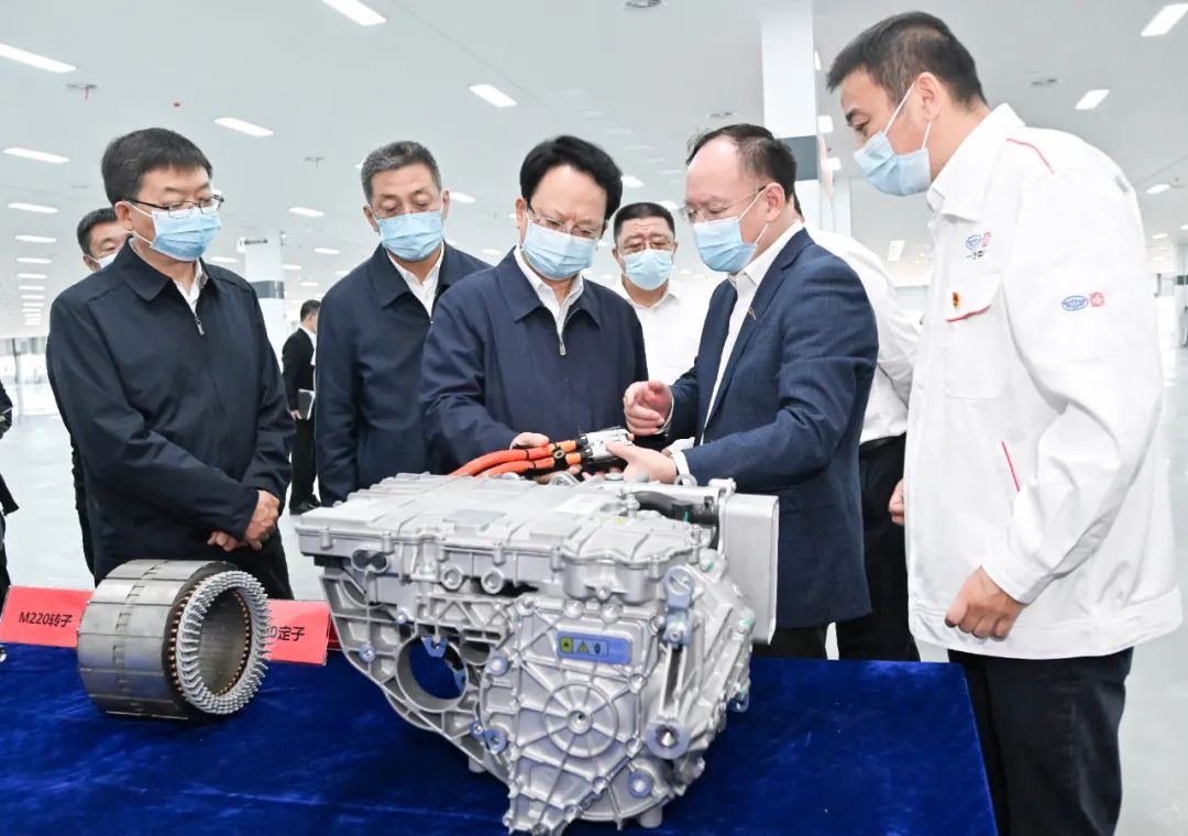 6月14日,省委书记景俊海到长春调研,在一汽中车合资电驱系统项目现场实地察看产品研发与科技创新等情况。