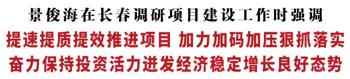 调研中,景俊海强调,发展是硬道理,项目是硬支撑。各级党委政府要坚持大抓项目、抓大项目,紧紧抓住转型数字化、服务智能化、社会共享化、产业高级化发展机遇,全力以赴抓项目、扩投资、兴产业,迅速掀起项目建设新的热潮。要狠下功夫谋项目,进一步强化与国家重大政策对接、与企业投资意愿连接,深入谋划一批重大产业、基础设施、科技创新、民生保障项目,为吉林高质量发展厚植优势、增添后劲。要狠下功夫引项目,深度融入国内国际双循环,纵深推进“五个合作”,持续提高开放合作水平,精准开展招商引资,跟着项目走、带着项目谈,千方百计推动项目在吉林落地落实。要狠下功夫建项目,抢抓项目建设“黄金期”,加大要素保障和配套服务力度,确保快建成、快投产、快达效。各级党政领导干部要严格落实包保责任,进一步强化跟踪调度,深入一线开展实地调研,积极帮助破解难题,用心用情用力保障项目建设顺利推进。
