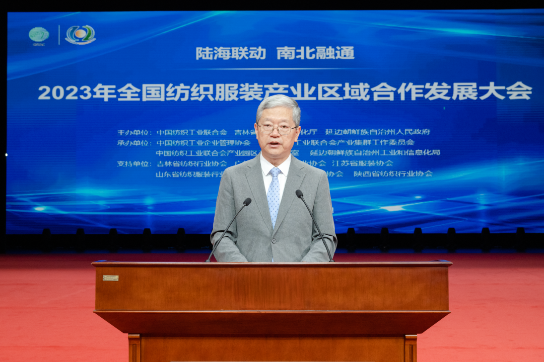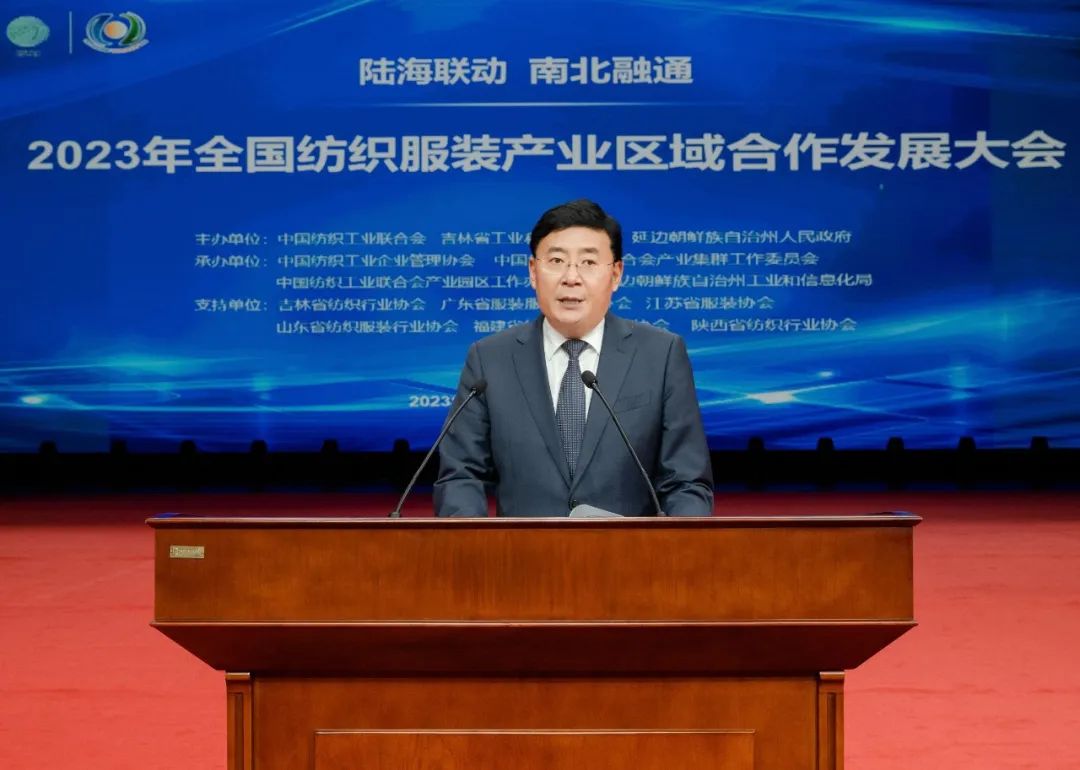 李国强在致辞时说,吉林是国家重要的工业基地。多年来,吉林省全力推动纺织工业高质量发展,加快打造以延边为主的服装加工基地,形成了化学纤维、棉纺织、毛纺织、服装服饰、产业用纺织品等多门类较为完整的产业体系。今后五年,是全面贯彻落实党的二十大精神、在中国式现代化进程中推进吉林全面振兴取得新突破的关键时期,吉林省将推动碳纤维全产业链建设,着力提升研发创新能力,做大做强轻工纺织产业,推动纺织服装行业竞争力实现整体跃升。诚挚欢迎中国纺织工业联合会和企业家们到吉林创新合作、投资兴业,我们将打造市场化、法治化、国际化一流营商环境,提供一流服务,让吉林成为投资沃土、兴业福地。