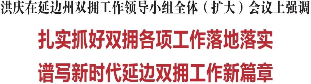 洪庆要求,要立足延边实际,狠抓重点任务,努力推动新时代双拥工作再上新台阶。要抓好拥军支前工作,大力支持部队建设,巩固提高一体化国家战略体系和能力。驻延部队要一如既往主动服务中心工作,在助力全州项目建设、产业发展、开发开放、生态保护、社会民生等工作中主动融入、参建共建,有效推进军民融合发展,为延边振兴发展贡献力量。要全力争创双拥模范城,总结宣传好我州双拥工作的成功经验,打响双拥品牌。要强化政策制度落地落实,认真抓好惠军政策清理清查,突出做好退役军人服务保障工作。
