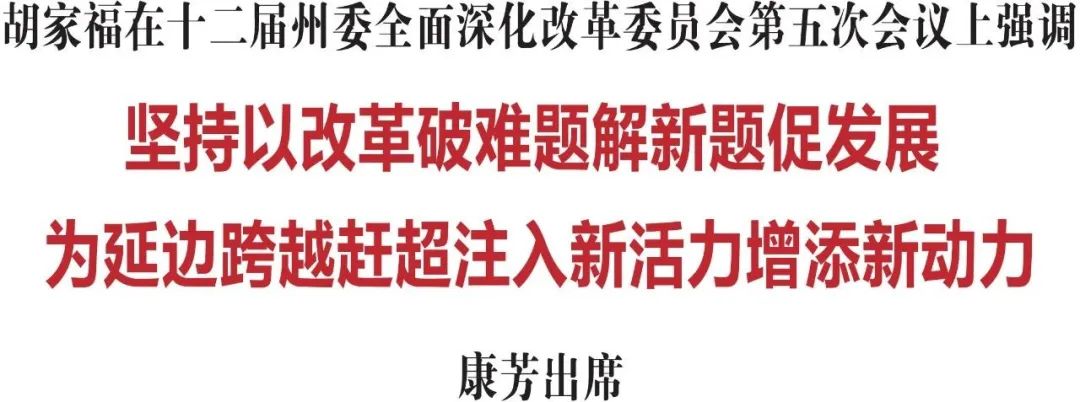 7月21日,省委常委、州委书记胡家福主持召开十二届州委全面深化改革委员会第五次会议。他强调,要深入贯彻习近平总书记关于全面深化改革的重要论述,按照中央深改委会议和省委深改委会议的部署要求,坚持以改革破难题、解新题、化危机、育新机、促发展,为延边跨越赶超注入新活力、增添新动力。州政协主席康芳出席会议。