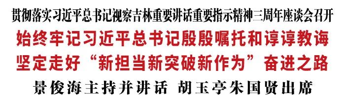 7月24日,贯彻落实习近平总书记视察吉林重要讲话重要指示精神三周年座谈会以视频形式召开。省委书记景俊海主持会议并讲话。他强调,要始终牢记习近平总书记殷殷嘱托和谆谆教诲,时刻保持创业奋斗、“就”在吉林的昂扬姿态,坚定走好“新担当、新突破、新作为”奋进之路。省委副书记、省长胡玉亭,省政协主席朱国贤出席会议。