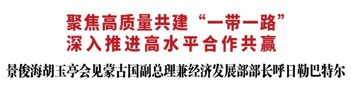 景俊海、胡玉亭向呼日勒巴特尔一行到吉林出席第十四届中国—东北亚博览会表示诚挚欢迎。景俊海说,今年是中国改革开放45周年,是“一带一路”倡议提出十周年。在这一重要时间节点举办第十四届中国—东北亚博览会,对于吉林省推进高水平对外开放具有特殊重要意义。吉林省高度重视与蒙古国的合作关系,愿意推动双方各领域合作实现长足发展。希望双方深入贯彻两国元首达成的共识,聚焦高质量共建“一带一路”,携手参与推进中蒙俄经济走廊建设,进一步扩大经贸投资、促进人文交流,努力实现更宽领域、更深层次、更高水平的互利共赢。