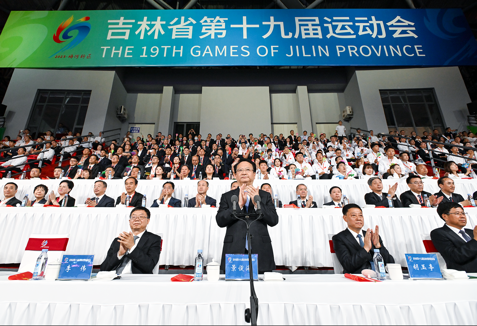 9月8日,吉林省第十九届运动会暨省残运会在梅河口市开幕,省委书记、省人大常委会主任景俊海宣布开幕,省委副书记、省长胡玉亭出席并致辞。