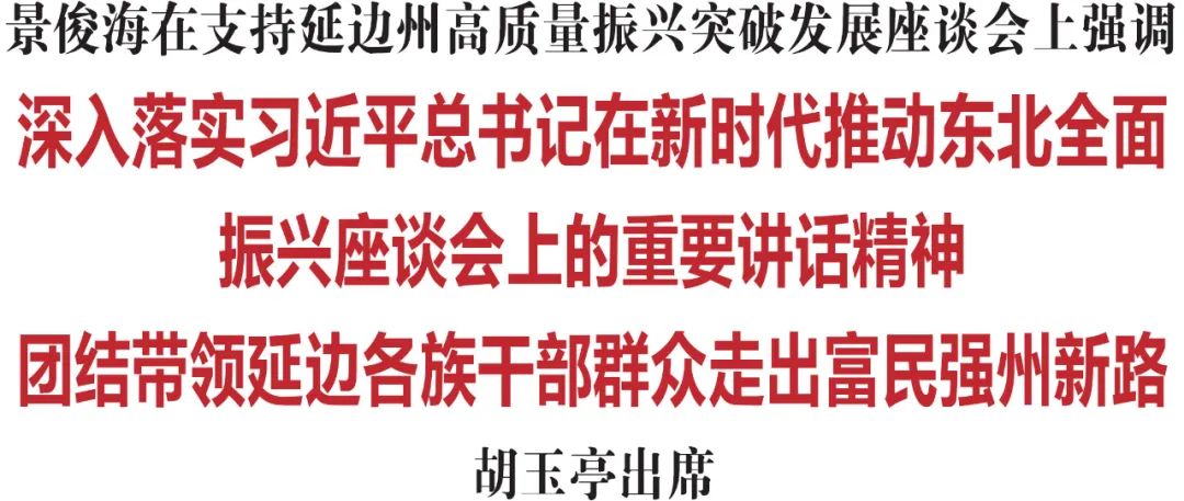 在充分肯定延边州工作后,景俊海强调,延边生态资源富集,区位优势突出,蕴含着巨大发展潜力。一要全面践行习近平总书记殷殷嘱托,争做促进民族团结进步、推动高质量发展、维护边疆稳固、实现人民幸福安康的示范标兵,真正在吉林全面振兴中找准定位、干在实处、走在前列。二要全面夯实发展根基,进一步发挥优势、彰显特色,科学规划发展布局,加快产业转型升级,做强做大医药健康产业,做优做活农林特色产业,做精做美边境文旅产业,突出抓好一批重大项目建设,打造规模化、集群化、品牌化的现代化产业体系。三要全面融入共建“一带一路”,加强互联互通,推进借港出海,充分发挥开放平台作用,大力发展面向东北亚地区的对外贸易,持续深化与宁波对口合作,以高水平开放推动高质量发展。四要全面放大生态优势,坚定不移走生态优先、绿色发展之路,深入打好污染防治攻坚战,筑牢国家生态安全屏障,促进生产生活绿色转型,持续汇聚绿色低碳发展新动能。五要全面加强边疆建设,铸牢中华民族共同体意识,巩固民族团结进步良好局面,扎实推进兴边富民、稳边固边。