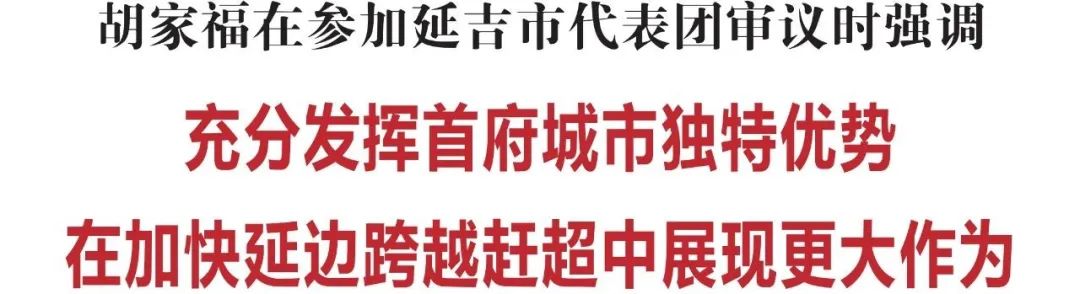 1月8日,省委常委、州委书记胡家福到延吉市代表团参加审议。他强调,延吉市要聚焦跨越赶超的目标任务,坚持项目为王、制造业当家,充分发挥首府城市的独特优势,推动全市经济社会发展实现新突破,在加快延边跨越赶超中展现更大作为。