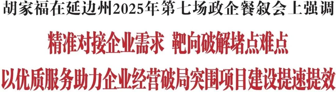 10月23日,延边州2025年第七场政企餐叙会在延吉举行。省委常委、州委书记胡家福出席餐叙会,与企业家代表们围坐一起、交心畅谈,共同研究解决企业发展面临的难题。他强调,各县市各有关部门要深入贯彻习近平总书记在听取吉林省委省政府工作汇报时的重要讲话精神和关于民营经济发展的重要论述,精准对接企业需求,靶向破解堵点难点,以优质服务助力企业经营破局突围、项目建设提速提效,为加快推动延边跨越赶超提供坚实支撑。