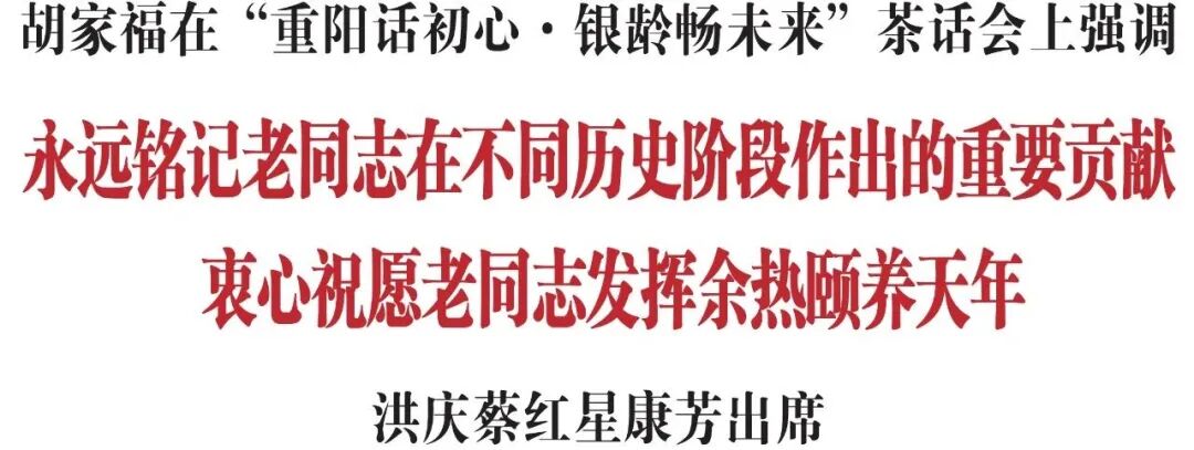 10月29日是中华民族传统节日重阳节,当天中午,我州举行“重阳话初心·银龄畅未来”茶话会,邀请部分州级老同志齐聚一堂、共庆佳节。省委常委、州委书记胡家福,州委副书记、州长洪庆,州人大常委会主任蔡红星,州政协主席康芳出席茶话会。