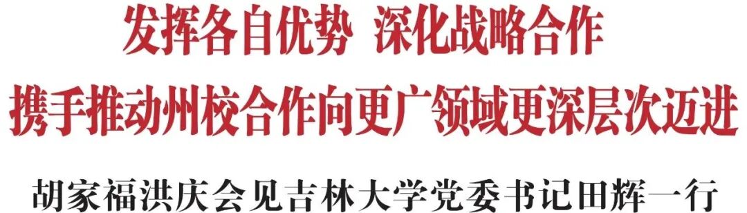 胡家福代表州委、州政府对田辉一行表示欢迎。他说,吉林大学是国内办学规模最大的重点高校,学术底蕴深厚、高端人才济济、科研实力强劲,建校以来培养了一大批学术大师、治国栋梁、创新团队,有力推动了国家科研事业和教育事业发展。当前,全州上下正在深入学习贯彻习近平总书记重要讲话和党的二十届四中全会精神,坚持以推动高质量发展为主题、以铸牢中华民族共同体意识为主线,一体推进教育科技人才事业发展,积极推动科技创新和产业创新深度融合,加快优化升级传统产业、培育壮大新兴产业,着力构建具有延边特色的现代化产业体系。希望吉林大学一如既往地关心支持延边发展,在产学研用协同创新、基础教育、医疗健康等方面深化务实合作,为延边走出高质量发展、可持续振兴新路提供帮助和支持。州委、州政府将始终把与吉林大学的战略合作置于更加重要位置,为吉林大学各类人才、科研团队提供优质服务、创造良好环境,推动双方合作迈上新台阶,努力结出更多丰硕成果。