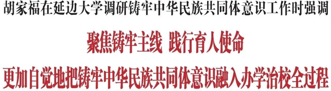 胡家福强调,延边大学要紧紧围绕“培养什么人、怎样培养人、为谁培养人”的根本问题,准确把握新时代党的民族工作新的阶段性特征,聚焦增进共同性这一方向,紧扣铸牢中华民族共同体意识这条主线统筹推进各项工作,努力打造铸牢中华民族共同体意识示范校。要扎实做好铸牢教育,建好铸牢中华民族共同体意识专门课程,用好《中华民族共同体概论》等教材,充分发挥“四馆一廊”育人平台作用,扎实推动铸牢中华民族共同体意识进教材、进课堂、进头脑,讲好“大道理”、“小故事”,夯实广大师生铸牢中华民族共同体意识的思想根基。要精心开展理论研究,充分发挥延边大学学科优势和科研力量,深入研究我国边疆史、北方民族史以及渤海国历史脉络,深挖蕴藏其中的“五个共同”、“四个与共”历史文化资源,加快构建具有延边特色的史料体系、话语体系、理论体系。