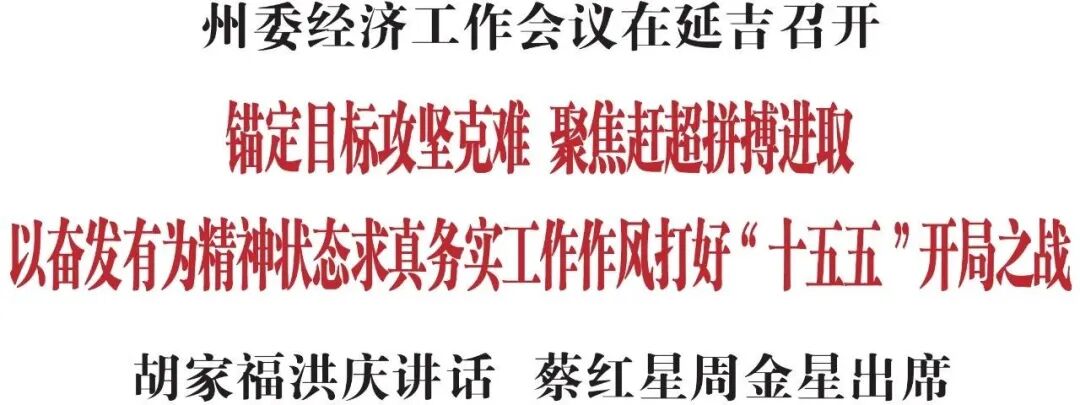 1月14日,州委经济工作会议在延吉召开。会议深入贯彻中央经济工作会议和省委经济工作会议精神,深刻分析当前经济形势,安排部署2026年经济工作。省委常委、州委书记胡家福出席会议并讲话,州委副书记、州长洪庆主持会议并讲话。州人大常委会主任蔡红星、州政协党组书记周金星出席会议。