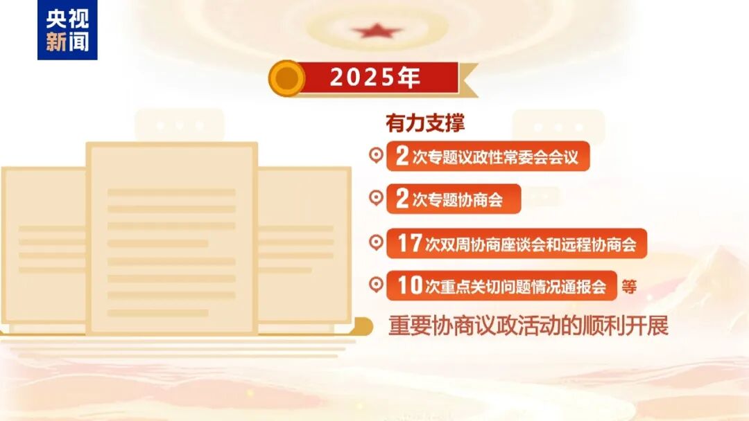 2025年,广大政协委员继续围绕“十四五”规划实施开展10项专项民主监督,形成10篇监督报告,多项监督意见被有关部委采纳,有力助推党和国家重大方针政策和重要决策部署贯彻落实。