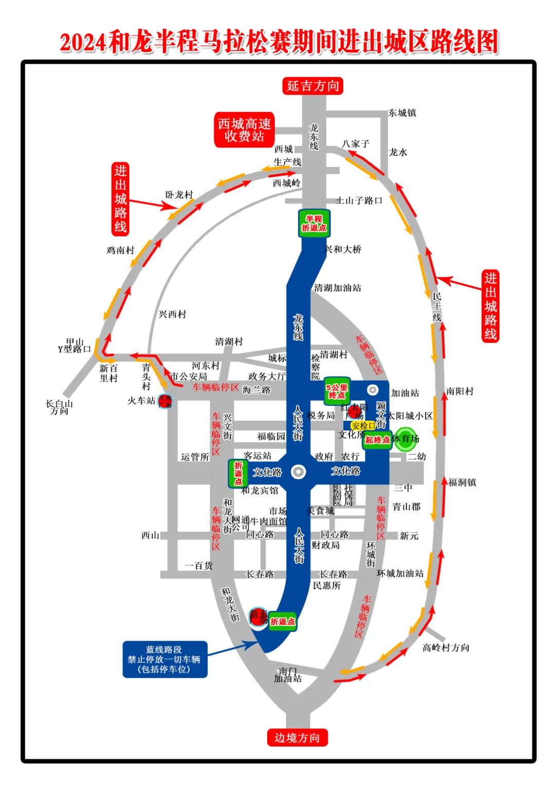 为确保赛事顺利进行,届时交警部门将在下列地点设立交通分流管制,对所有驶往和龙市、长白山方向车辆进行分流管制,请广大市民提前做好绕行准备,服从交通警察指挥行驶。