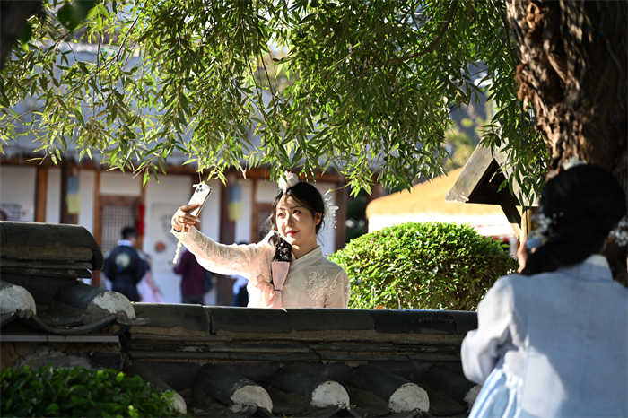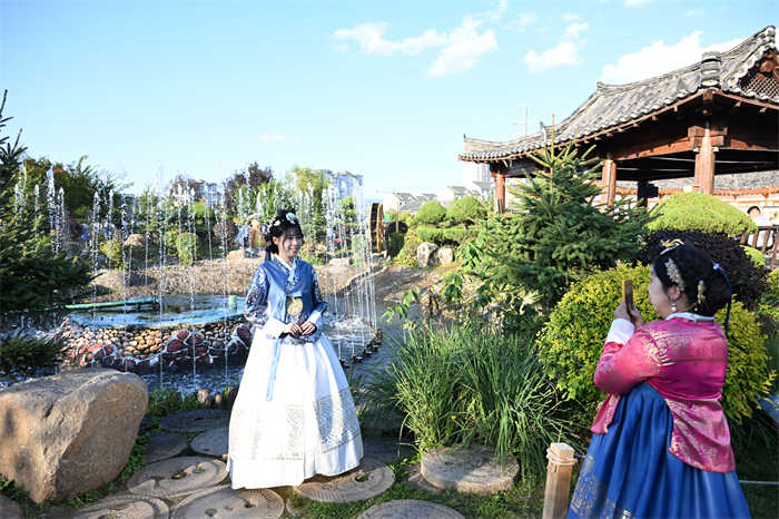 来自云南的苗族姑娘王彩琼第一次来到延边,穿上了期待已久的朝鲜族公主服装,在民俗园里拍摄了许多漂亮的照片。她说,这里的每个场景都像是电影中的镜头,真实而梦幻。
