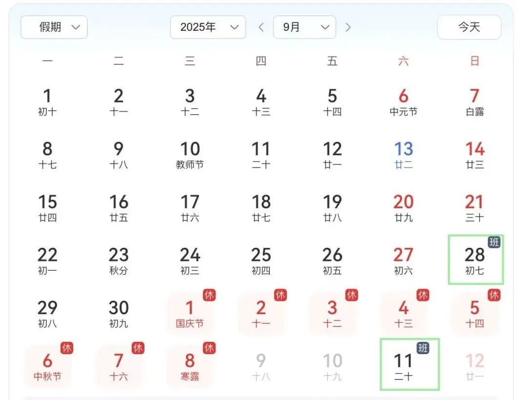 其中,国庆中秋假期:10月1日至8日放假调休,共8天。所有收费公路(含机场高速、收费桥梁和隧道)免征小型客车通行费。10月9日0时起,恢复正常收费。