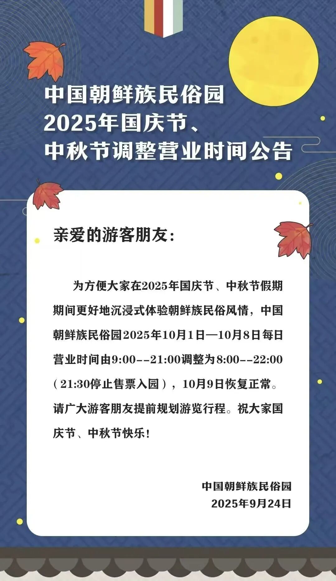 十一长假,中国朝鲜族民俗园延长营业时间
