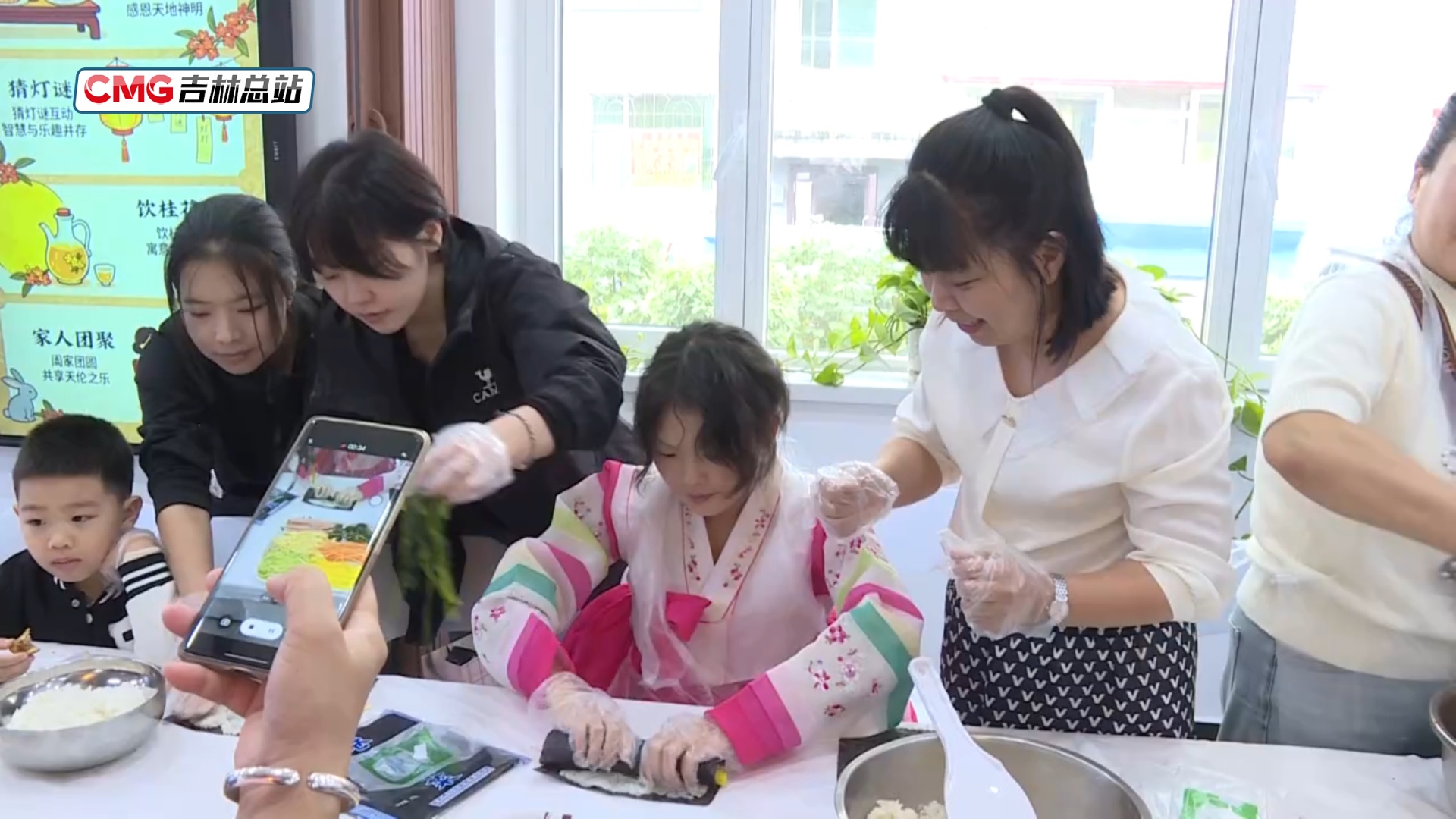 在民俗区,广东陈先生一家与本地金阿姨组队玩延边特色“尤茨游戏”;在饮食区,各族家庭在本地阿姨指导下做辣白菜,交流腌菜心得。紫菜卷、拌饭制作同步开展。
