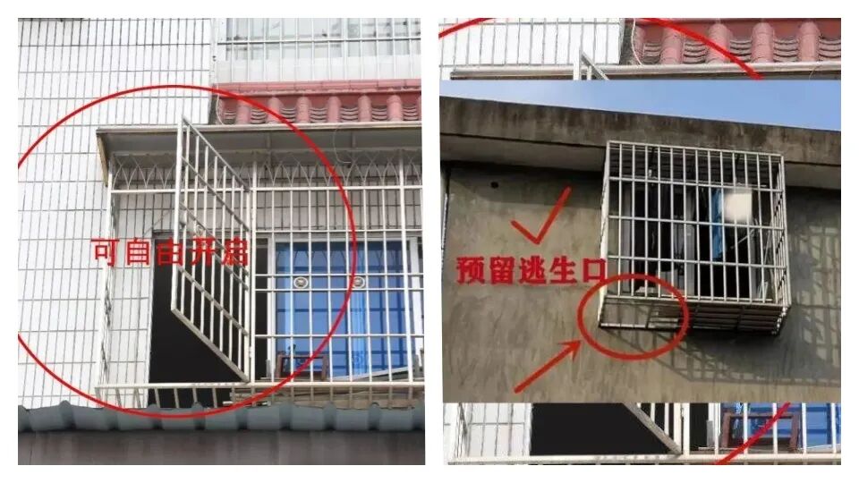 若发生火灾,封闭的防盗窗会阻碍逃生,因此,应提前在防盗窗上预留一扇“逃生门”。已经安装全封闭防盗窗的,也可以改装一个逃生出口。