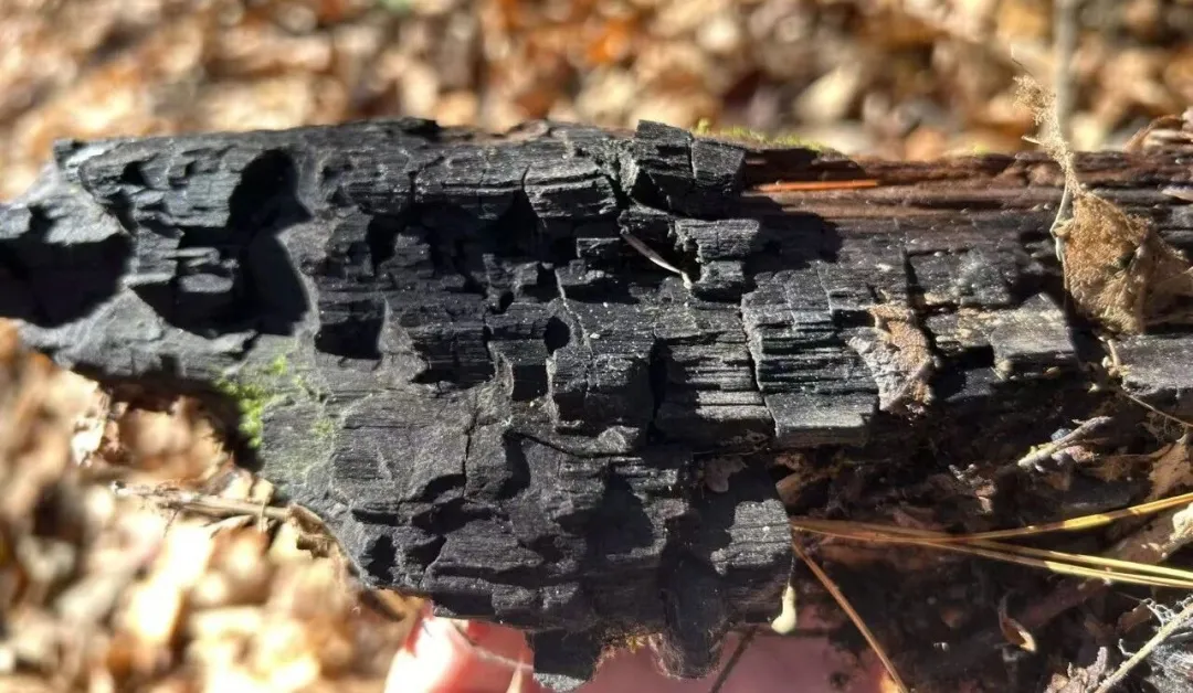 踏查组一行发现了小营子岭公路两侧的一些战壕、散兵坑及小营子岭制高点的日军堡垒。从现场情况来看,遗址痕迹保存较为完整。日伪军在制高点修建的堡垒规模较大,环形工事自半山腰开始沿山坡一路蛇行通到制高点的堡垒。堡垒轮廓为圆形,目测直径约10米,经过88年的自然侵蚀,堡垒的坑深仍有1.7米左右,坑内有大量多年凋落的落叶,还发现了若干块残余的木炭。整个工事中还有若干处地窨子的痕迹。