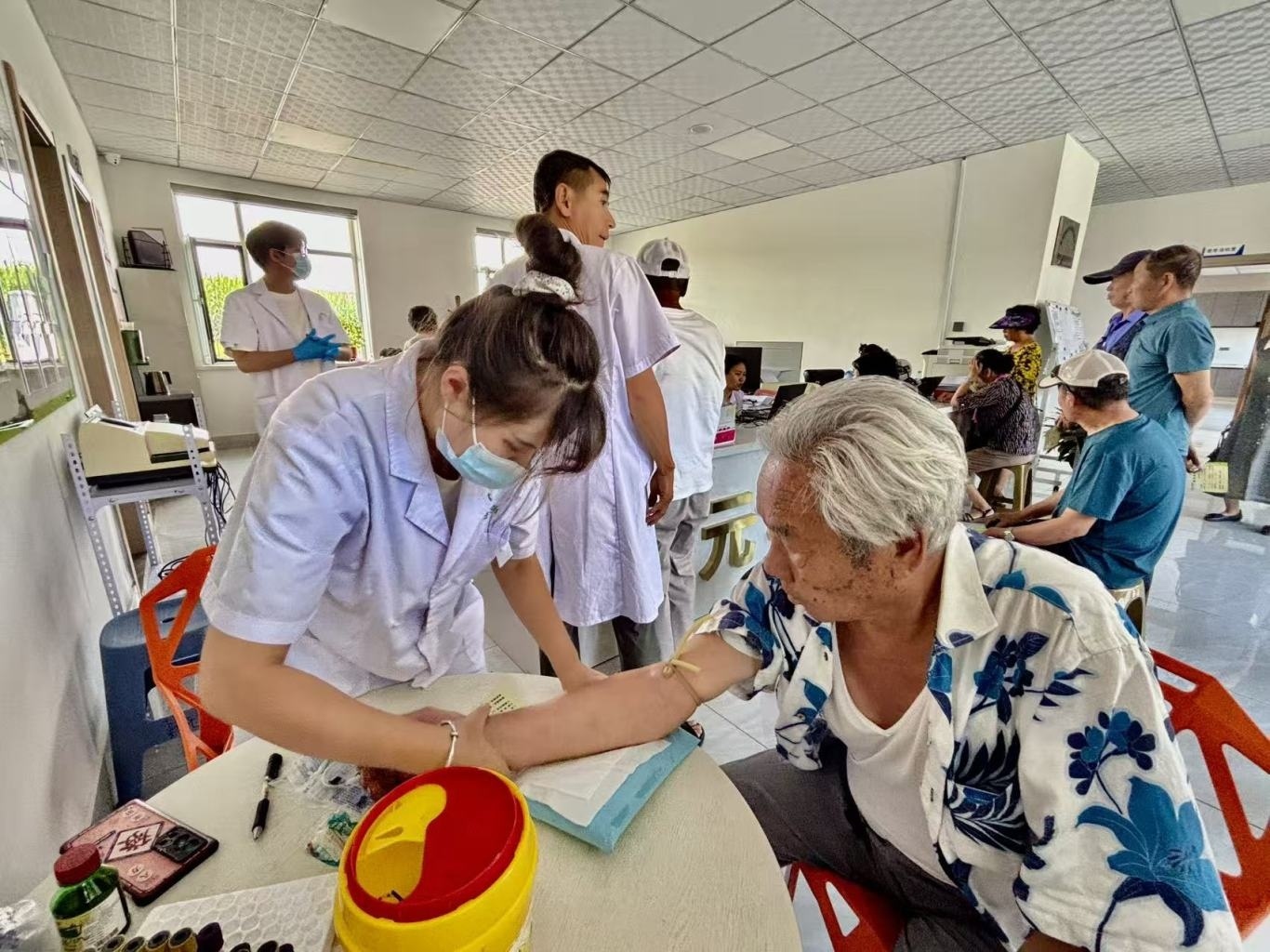 服务下沉,免费体检“家门口”,健康守护更“暖心”。联合镇卫生院及志愿者组建专业体检小队,定期在村部开展免费体检服务。将B超、心电图、血压血糖检测等基础项目直接送到“家门口”。现场提供健康咨询和用药指导,并同步建立、更新个人健康档案。截至目前,已开展免费体检活动2次,覆盖全村126位65周岁以上老年人,为198位老年人建立完善健康档案,现场提供健康咨询130余次,发现并协助干预慢性疾病隐患87例。