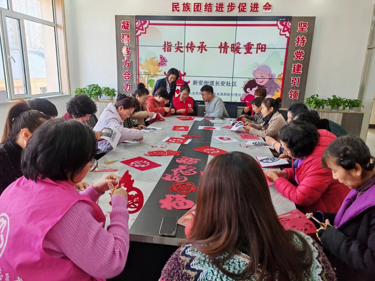 在珲春市新安街道长安社区,“指尖传承情暖重阳”剪纸活动成为文化传承的生动载体。巾帼志愿者为20余位老人送上节日祝福与创作材料,手工老师详解剪纸千年历史与技法,引导老人们剪出“重阳”“敬老”“祥云”等寓意吉祥的图案。红纸翻飞间,非遗技艺得以延续,敬老情怀得以抒发,实现了传统节日与文化传承的双向赋能。