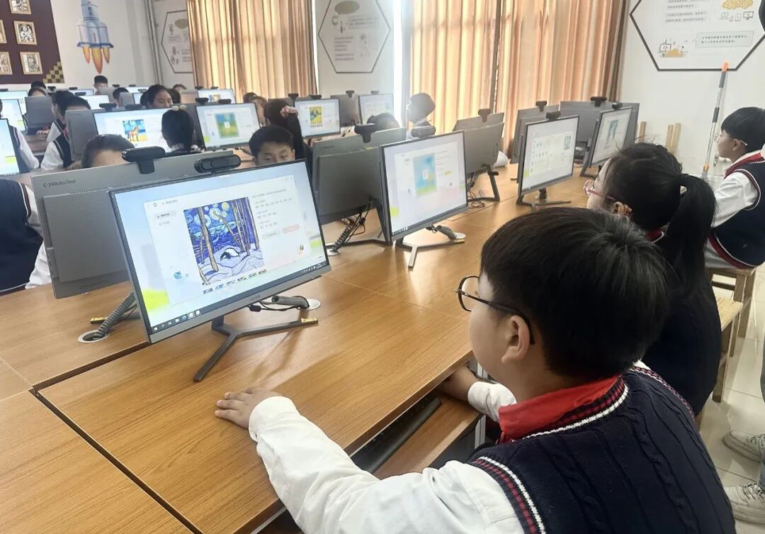 如果说护眼灯守护的是孩子的“现在”,那么“云教室”点亮的则是他们的“未来”。今年初,汪清县第一小学引入阿里云智慧教育平台,建成两间计算机云教室,配备了60台平板电脑及专业教学软件。在这里,学生们不仅能学习基础的计算机知识,还能通过AI工具进行创意绘画、编程设计,甚至能与杭州、上海等地的名校学生开展“云端研学”。
