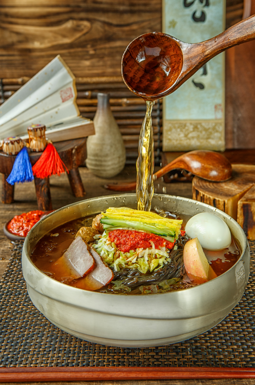 “记得刚接手时,常有老顾客来‘找茬’,说‘味道不对了’。”金莲姬说,正是这些“挑剔”的顾客,让她更加坚定“守好老味道”的决心。2013年,她带领团队启动全面改革,明确“民俗特色冷面”核心定位,从原材料甄选到制作流程管控,逐一对照老工艺标准优化升级。“荞麦面要选当年新粮,牛肉汤得用牛骨慢炖6小时以上,就连辣白菜的发酵时间都要精确到天。”金莲姬介绍,每一碗冷面端上桌时,必须保证荞麦清香与牛肉鲜味交融,这便是老字号坚守七十余载的“风味密钥”。