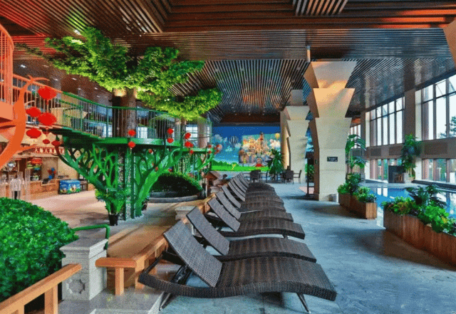 延吉恐龙温泉酒店有特色主题客房、温泉池等,配套完善,是集多种功能于一体的度假休闲好去处。酒店设有1.78万平方米的温泉区,19个特色泡池(如冰火池、瑶药池、花瓣池等)及无边际泳池。温泉富含碳酸氢盐及微量元素,被誉为东方“美人汤”。独立别墅区精美如庄园,门前均设有私享汤泉房,为游客提供了隐秘奢华的放松空间。