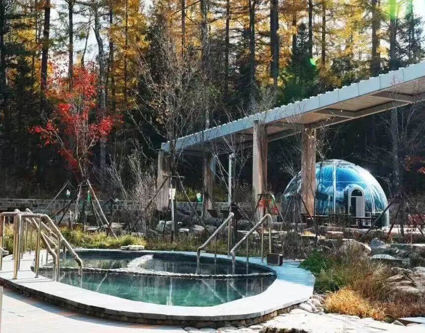 长白山临溪火山温泉位于安图县二道白河镇,拥有室内外泡池共36个,其中室外泡池17个,中庭泡池7个,室内泡池12个。长白山天池水奔流而下,从临溪火山温泉中间穿行而过,故名“临溪火山温泉”。泡在温热的温泉里,暖意包裹全身,疲惫瞬间消散,舒适又惬意。