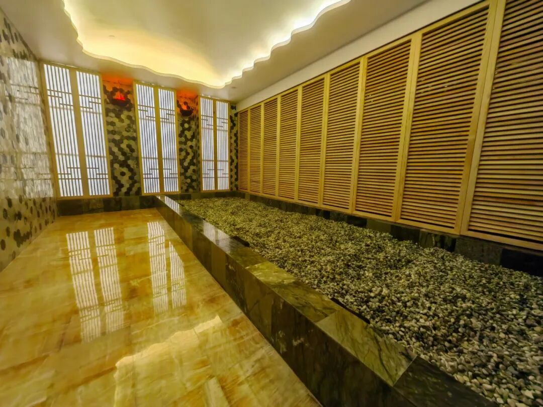 山水可以悦目,温泉可以养神。王朝圣地温泉酒店依长白山而建,距北景区山门仅30公里。温泉酒店设有儿童嬉水区、天然水疗池等,汗蒸理疗体验馆、健身区、游泳区等,室外泡池绿树环绕、流水潺潺,切身感受长白山地区温泉沐浴文化。这里共有室内外汤池29个,汤池采用长白山天然温泉水,泡一会儿皮肤就滑滑的。
