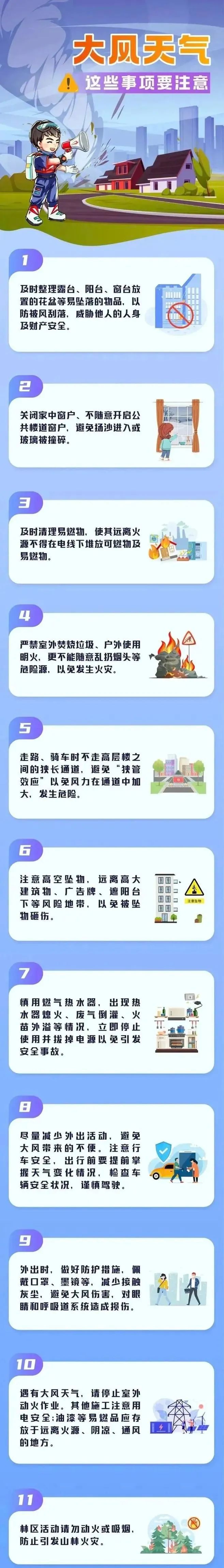 1.关闭家中窗户,以防大风吹入,危及室内人员和物品安全。