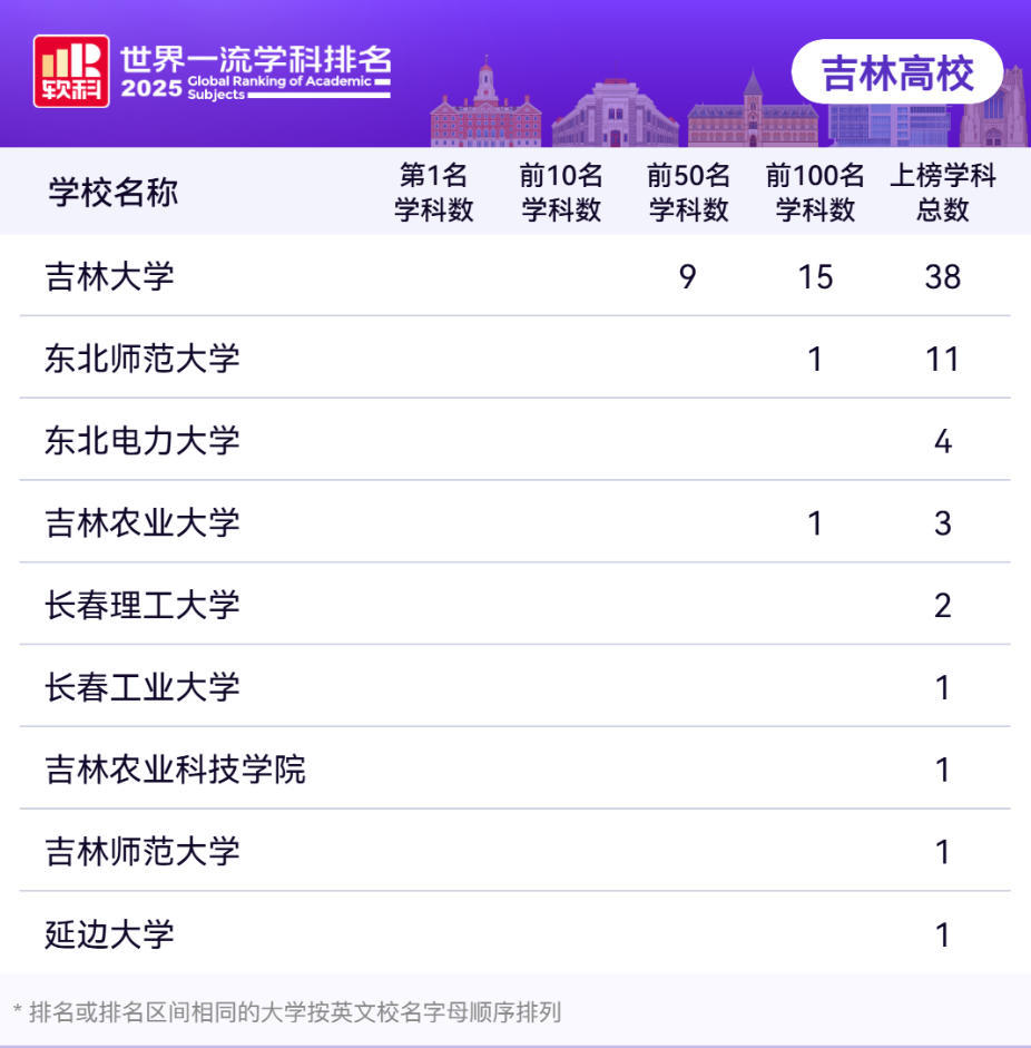 2025年11月18日,高等教育评价专业机构软科正式发布2025“软科世界一流学科排名”,吉林省内共有9所高校的62个学科上榜。