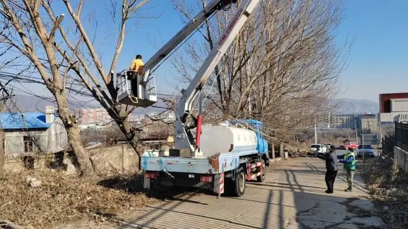 强化日常养护管理,夯实基础保障。做好新栽绿化苗木冬季防寒,针对冬季寒冷特点,入冬前为3000余株新栽苗木浇灌防冻水,提高苗木抗寒能力,并及时清理绿地内落叶、杂草,减少病虫害滋生环境,共对全市20余处区域2000余株树木进行日常修剪。同时,安排专人开展日常巡查,实时监测树木生长状况,及时处理养护过程中发现的问题,确保冬季养护工作无死角、全覆盖。