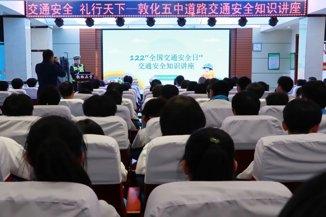 敦化市公安局交通管理大队走进敦化市第五中学,开展了一场寓教于乐的交通安全宣传活动,全校1500余名学生及教师参加。民警打破传统宣讲模式,以学生喜闻乐见的“讲课+互动”形式,提升学生参与度和求知欲,提升“知危险会避险”能力。民警以“安全意识培育”为着力点,通过趣味化、场景化宣讲,将交通安全知识转化为学生易懂、易记、易用的行为准则,养成守法出行的好习惯。民警围绕走路、乘车、骑车等上下学方式,根据问题难易程度,设置头盔、小熊、水杯等奖品,以回答问题巩固学习成果,将交通安全知识深扎在学生们心中。活动中,学生们热情参与,积极回答问题,不仅对授课内容掌握较好,对民警提出的日常出行问题也对答如流。最后,民警要求学生们将所学到的交通安全知识传递给身边人,带动家庭和社会,形成人人文明守法、人人出行安全的道路交通环境。