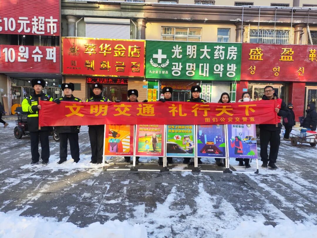 图们市公安局交通管理大队联合图们市新时代文明实践宣教中心及交通志愿者在图们市中心市场门前,开展了以“文明交通 礼行天下”为主题的道路交通安全宣传活动。活动中,通过设立宣传展板、悬挂宣传条幅、发放宣传资料等方式向市民朋友普及乘车人员交通安全注意事项、“一盔一带”重要性、交通法规和交通安全常识,引导广大市民朋友摒弃交通陋习,养成文明出行、文明驾驶的好习惯,共同创造安全通畅、文明和谐的道路交通环境。