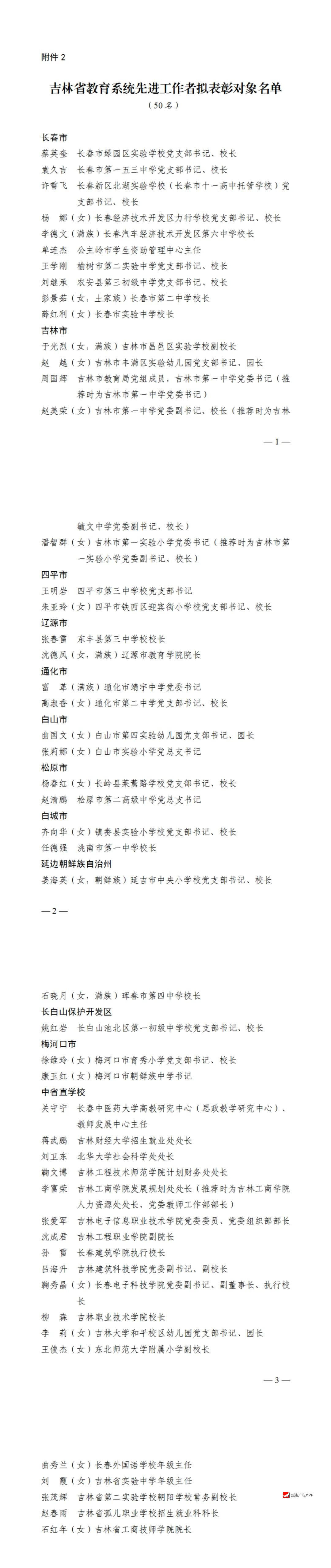 关于对吉林省教育系统先进集体、先进工作者和优秀教师