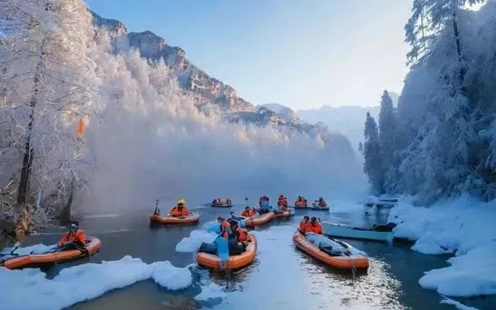 珲春市拥有“一眼望三国”的边境奇观。站在防川风景区龙虎阁远眺,中、俄、朝三国风光尽收眼底。图们市的温暖则藏在民俗细节里。百年部落的传统民居中,暖炕上的温情对话与象帽舞的欢快节奏交织,冰雪节庆的“流量”在这里转化为实实在在的消费“留量”。龙井市完美融合了动感与宁静。海兰江滑雪场是冰雪运动的乐园,而琵岩山温泉古村落则提供了一处温暖的休憩之所。“雪国列车”沿途展示的长白山壮丽雪景,成为这个冬季热门的旅行选择。和龙市营造了童话般的雪域秘境。老里克景区新增的特色气膜游客服务区与升级后的传统马拉爬犁,为游客提供了更舒适的体验。夜晚的“雪夜星空营地”和冰封暗河瀑布浪漫旅拍项目,则将冰雪浪漫推向极致。安图县长白山下的雾凇漂流堪称奇观。大泉河上,游客乘皮筏穿梭于雾凇之间,宛如仙境般漫游。精心设计的“冰雪假期”套餐,将雾凇观光、驯鹿互动、雪地摩托等体验巧妙组合,满足不同游客的需求。