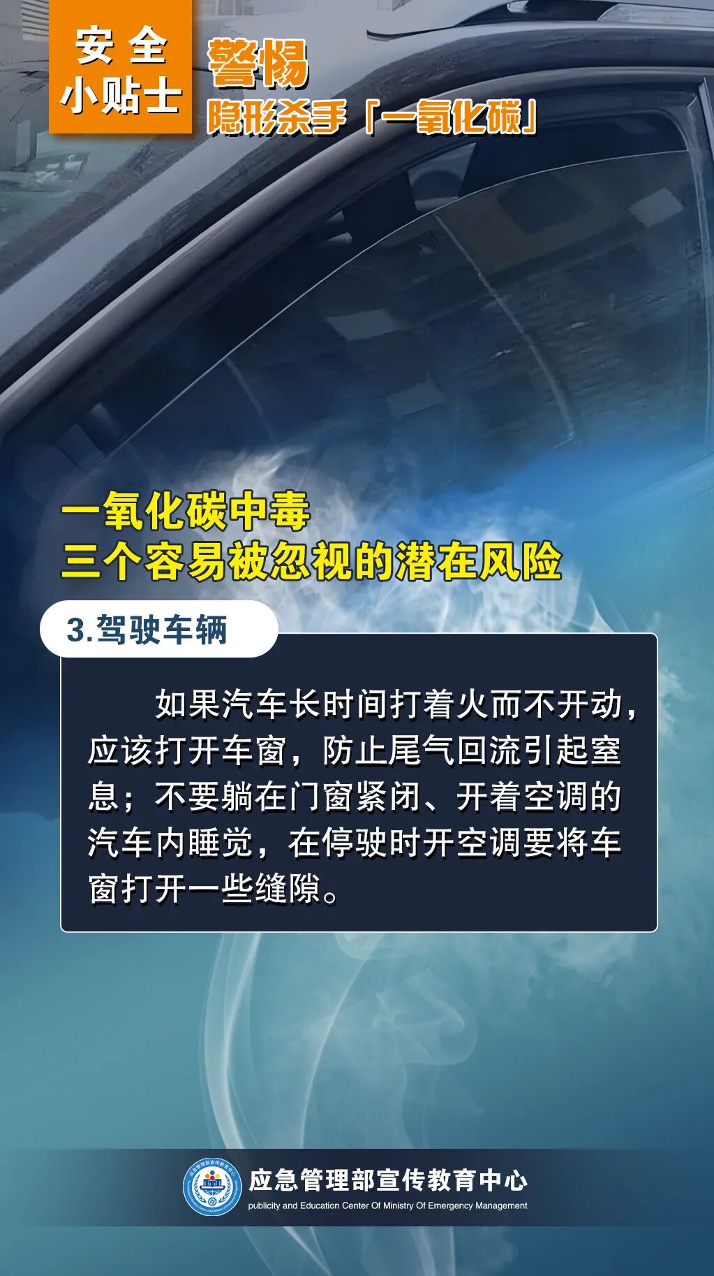 1.安装一氧化碳报警器;