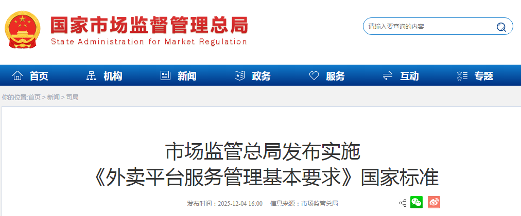 针对近年来外卖行业存在的“幽灵外卖”、非理性竞争以及外卖配送员权益保障不足等问题,近日,国家市场监管总局发布实施推荐性国家标准《外卖平台服务管理基本要求》,要点如下: