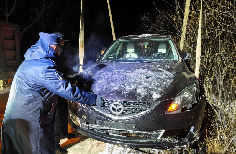 当日下午,受强降雪天气影响,安图县东方红林场至五号分线路段路面湿滑,通行条件较差。该站民警在执行日常巡逻任务时,发现一辆小型汽车不慎翻入路边深沟,情况紧急。