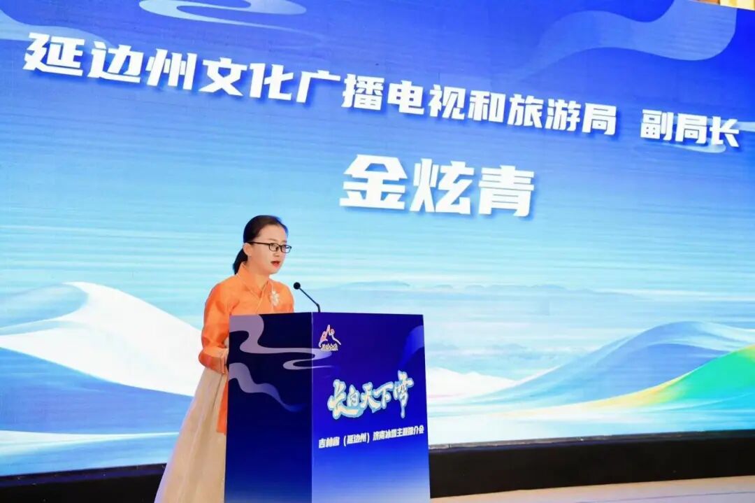 现场,与会嘉宾通过延边州冰雪资源宣传片进一步了解了延边的自然风光、人文景观、特色美食、冰雪旅游和节庆活动等文旅资源,延吉市和安图县作为延边州冰雪旅游资源代表性县市,进行了从民俗和美食到冰雪资源与玩法的特色推介。