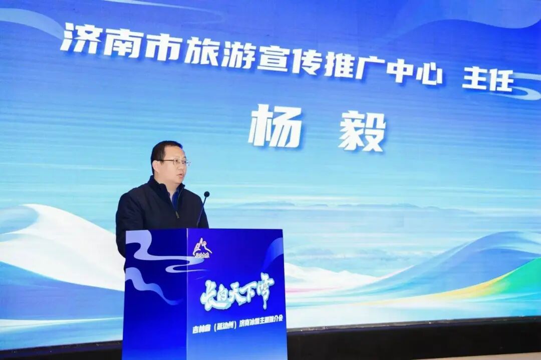 济南市旅游宣传推广中心主任杨毅在致辞中表示,济南以泉闻名,温婉灵秀;延边粉雪纷飞,是冰雪秘境。他盛赞延边在文旅发展上的成就,称其为学习标杆。他表示,济南正打造“这一站,济南”品牌,愿以此次推介会为起点,与延边深化资源挖掘、品牌推广等合作,推动客源互送,共谱文旅合作新篇,并诚挚邀请延边友人来济感受泉城魅力。
