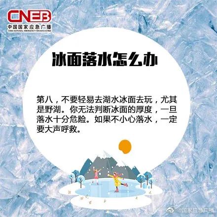 1.冰面光滑、易碎,冰水寒冷,一旦不小心落入冰窟窿中,施救难度很大。